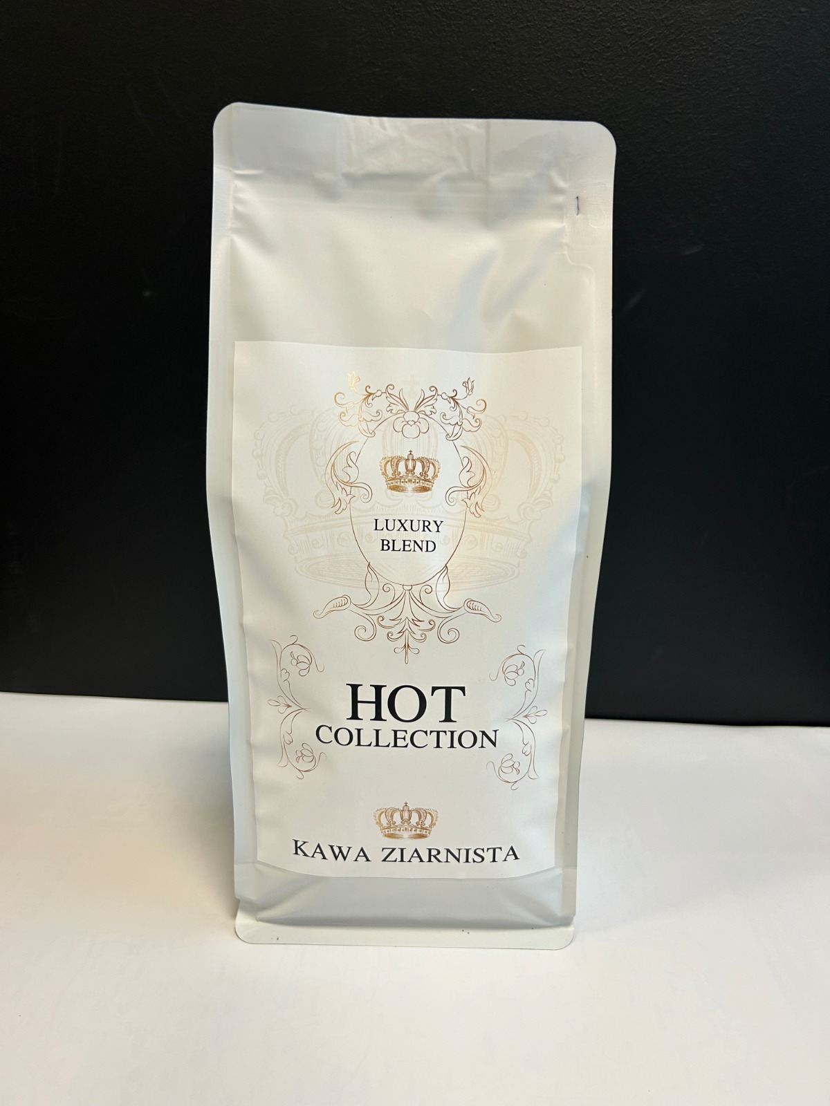 Kawa pakowana jest w estetyczne opakowanie typu Flat Bottom White, które zapewnia wygodne przechowywanie oraz dłuższą świeżość ziaren.
