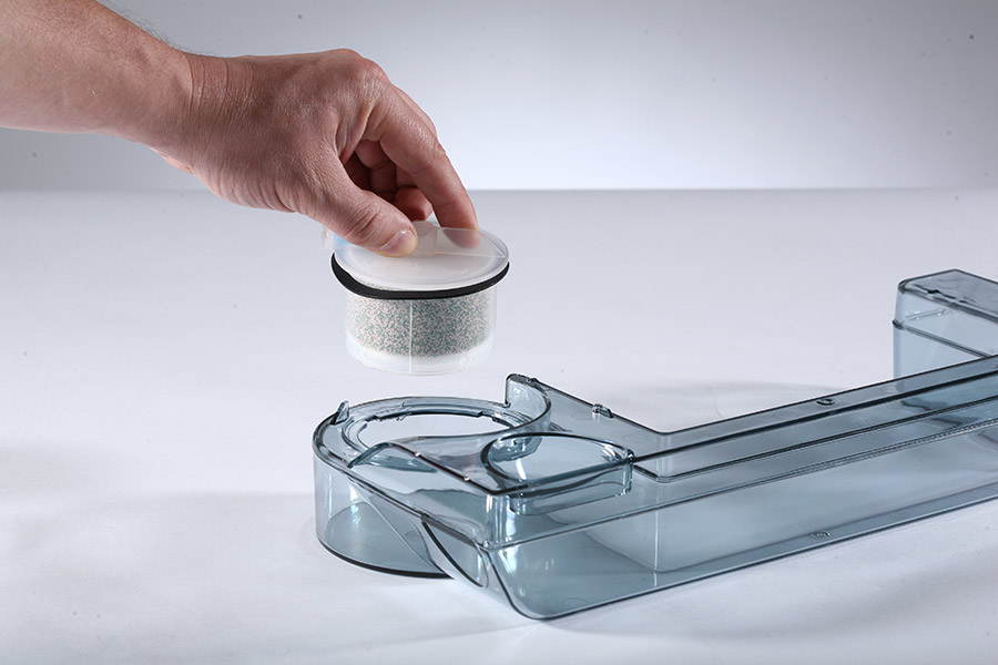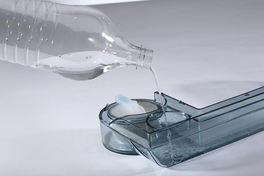 Wyjmowany zbiornik na wodę ze wskaźnikiem poziomu. Pojemność 0,75 litra