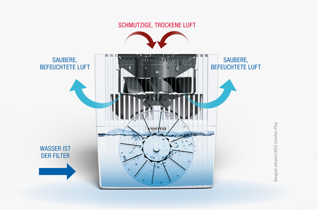 Jak działa higieniczne, naturalne nawilżanie z Venta-Airwasher LW25, LW45 Comfort Plus?